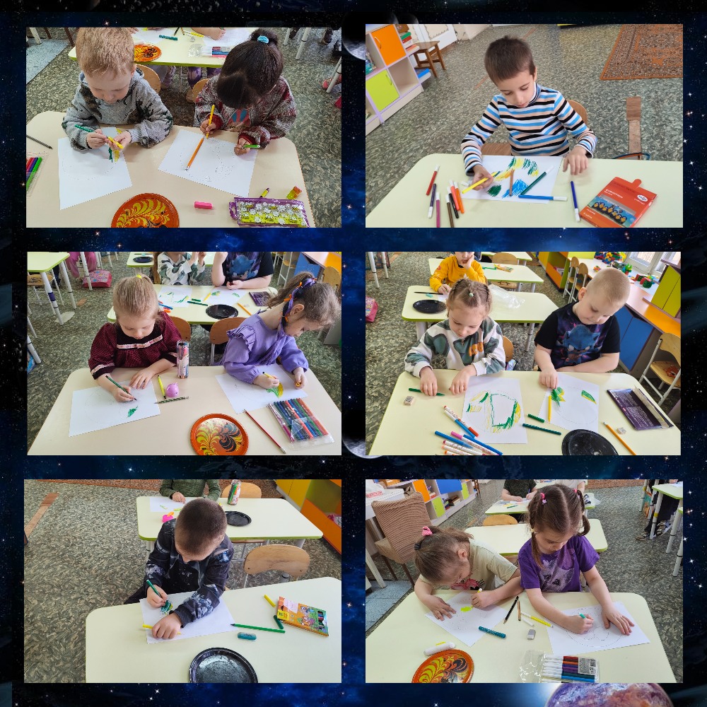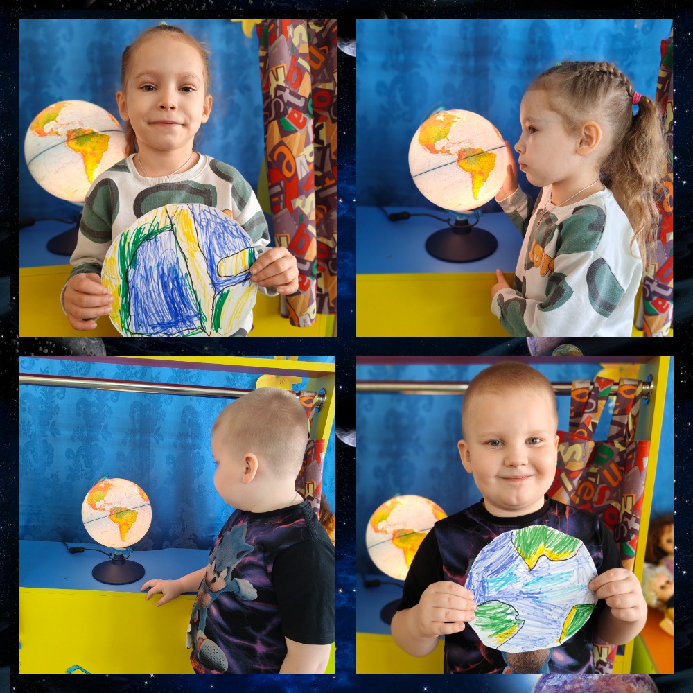 А потом наши маленькие художники взяли в руки фломастеры и принялись рисовать Землю такой, какой они её себе представляют. Голубые океаны, зелёные и жёлтые пятна материков — у каждого получилась своя, неповторимая планета. Ребята старательно закрашивали моря и обозначали сушу. Ведь Земля — это не просто планета, это наш дом, который нужно беречь и любить.